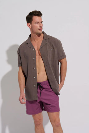 Boutonné en lin à manches courtes - Charcoal / M est en rupture de stock et sera expédié dès qu’il sera de retour en stock.