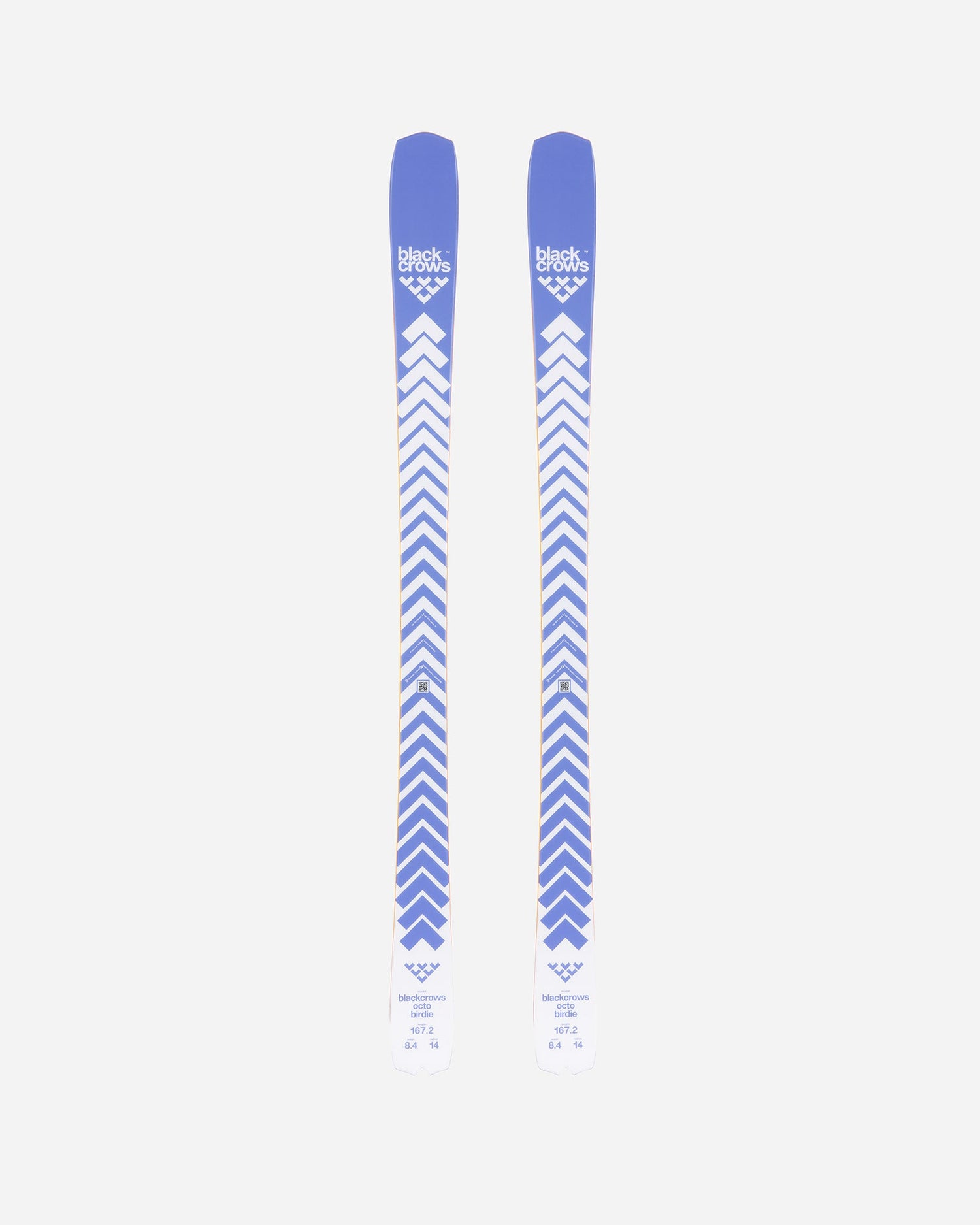 Octo Birdie! Here's a brand-new all-mountain ski, a younger cousin inspired by the Mirus, the UFO ski, and the enormous success of blackcrows over the past two years. With the Octo Birdie, we want to take our exploration of on-piste and piste skiing further, shaking up the rules to enhance the skier's enjoyment. The goal is to blend angular turns with new-school-inspired ease. The Octo Birdie is also a UFO for carving, and will appeal to both fanatics and novices. The swallowtail is still there, for style. Smile at the next turn.