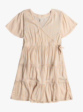 Made from airy crinkle fabric, the ROXY girls' Hula Moon dress offers a faux wrap silhouette with soft flutter sleeves, an elastic waist and a ruffled skirt. Available in a checkered plaid print, it brings a warm spring vibe to your look - whatever the season.