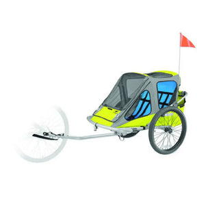 The Blackburn Model T Cart is the larger, more robust choice with several conversion options for versatile use. The interior can comfortably accommodate two children, up to a total of 100 lbs thanks to the padded seats and secure 5-point harness. The included quick release attachment allows compatibility with virtually all bikes, for quick assembly and disassembly. The tie rod folds under the cart, while the structure is easily foldable for easy storage or transport in the car.